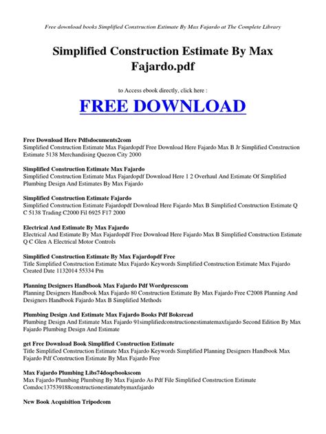 | File Name: Construction Estimates By Max Fajardo Pdf Download.pdf Size: 7931 KB Type: PDF, ePub, eBook |