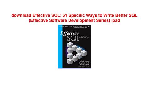 | File Name: Effective Sql 61 Specific Ways To Write Better Sql Effective Software Development.pdf Size: 6570 KB Type: PDF, ePub, eBook |