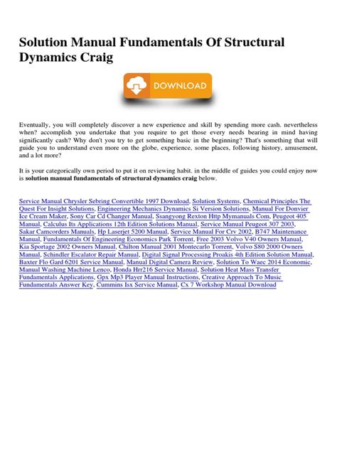 In order to read or download Fundamentals Of Structural Dynamics Craig Solution Book Mediafile Free File Sharing ebook, you need to create a FREE account.