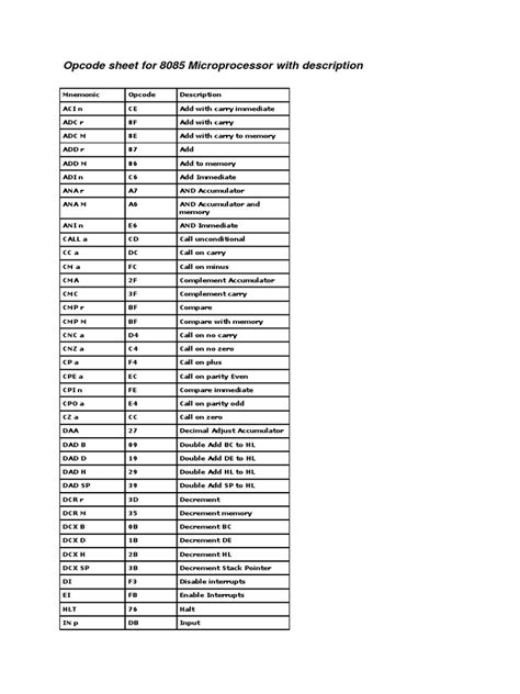 | File Name: Sheet Pdf Microprocessor 8086 Opcode Sheet Pdf Free.pdf Size: 6236 KB Type: PDF, ePub, eBook |